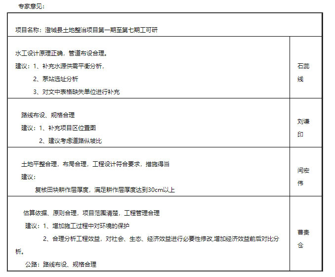 經(jīng)專家組集體討論,認為澄城縣土地整治項目第一期至第七期工可研報告編寫合理,數(shù)據(jù)準確。原則通過。